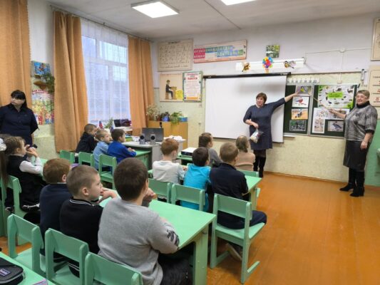 Гостями школы стали сотрудники заповедника «Брянский лес» Елена Ивановна Гаргаева и Любовь Викторовна Савченкова. Они в простой и интересной форме рассказали детям о зимующих пернатых, о том, почему им трудно пережить морозы и как важна подкормка зимой.