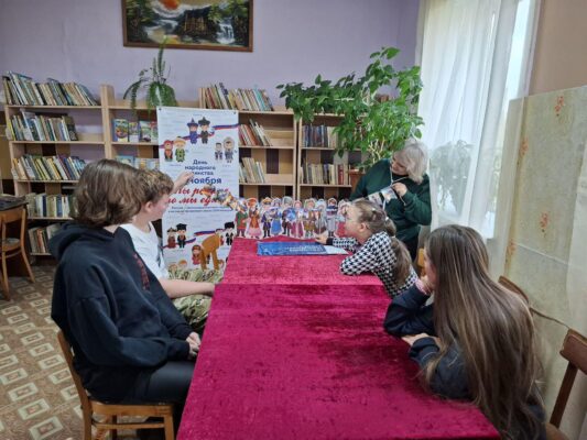 Это событие было организовано с целью дать детям возможность глубже понять историческое и культурное значение праздника, который символизирует сплоченность и единство многонационального народонаселения России. Ведущими мероприятия стали библиотекарь Т.Е. Соловова и специалист Дома культуры Г.В. Васильева.