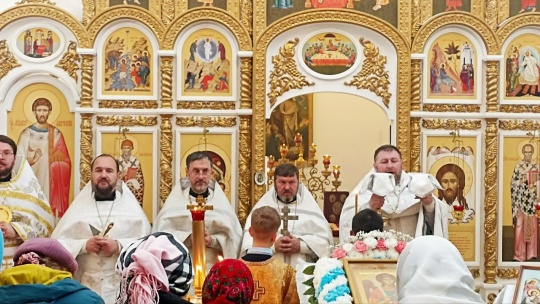Божественную литургию возглавил настоятель Тихвинского храма иерей Андрей Маслеников. Ему ...