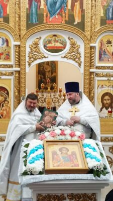 Благочинный Суземского церковного округа иерей Алексий Серебряков поздравил духовенство и всех молящихся с престольным праздником, поблагодарил за совместную молитву. В знак особой духовной поддержки приходу в день праздника от благочиния была передана богослужебная книга «Апостол», которую вручили настоятелю храма иерею Виктору Гамзову.