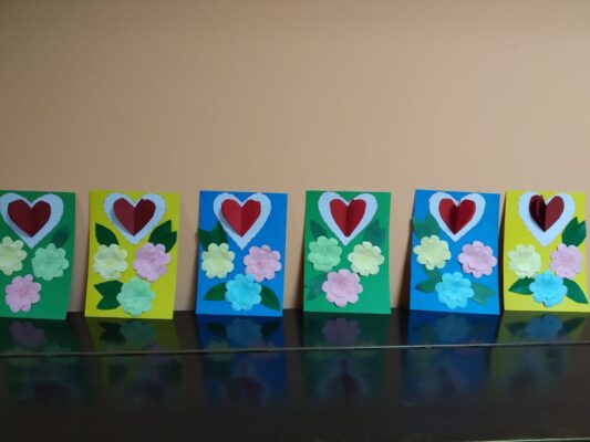 Мастер-класс посвятили предстоящему Дню матери, который в этом году отметят 30 ноября. В преддверии самого трогательного и нежного праздника участники любительского объединения «Умелые ручки» с большим старанием и любовью создавали поздравительные открытки в технике объёмной аппликации.