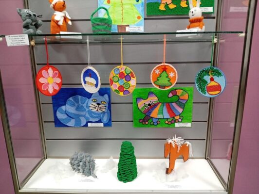 В Суземском культурно-досуговом центре открылась выставка (0+) работ юных мастеров из любительских объединений «Волшебная ниточка» и «Клубочки», действующих при районном Доме культуры. Выставка представлена работами, выполненными в технике ниткография, вязанные игрушки на спицах и крючком, работы с элементами алмазной мозаики, а так же игрушки выполненные с помощью наматывания нити на силуэт.