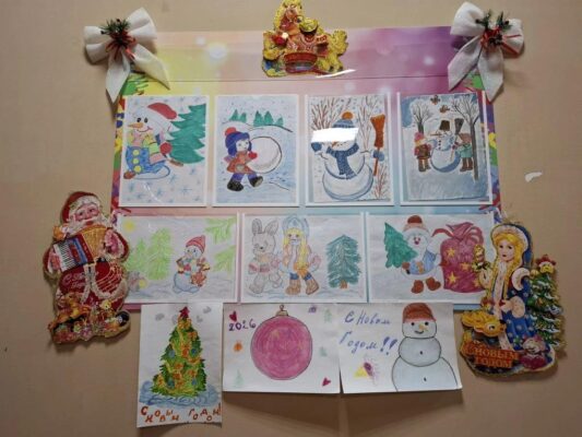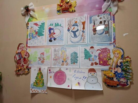 Юные художники по‑своему увидели красоту зимы: кто-то изобразил тихий вечер в деревне с огоньками в окнах, кто-то — весёлые игры на улице, катание с горки и лепку снеговика. В рисунках много ярких красок и добрых деталей, которые сразу погружают зрителя в атмосферу праздника.