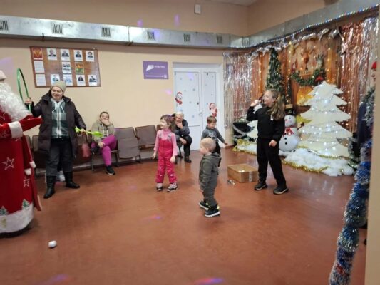 Дед Мороз и ведущие подготовили для детей множество игр и конкурсов. Участники водили хороводы вокруг ёлки, соревновались в ловкости и смекалке, отгадывали новогодние загадки, участвовали в шуточных эстафетах и танцевальных паузах. Каждый ребёнок смог проявить себя, никто не остался в стороне.