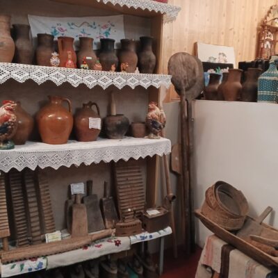 Особый интерес вызвали старинные сундуки для хранения одежды, массивная русская печь с кочергой, ухватом и лопатой для выпечки хлеба. Участникам показали маслобойку и рубель, применявшийся для разглаживания постиранного белья. Каждый экспонат сопровождался рассказом о том, какое место он занимал в жизни крестьянской семьи.