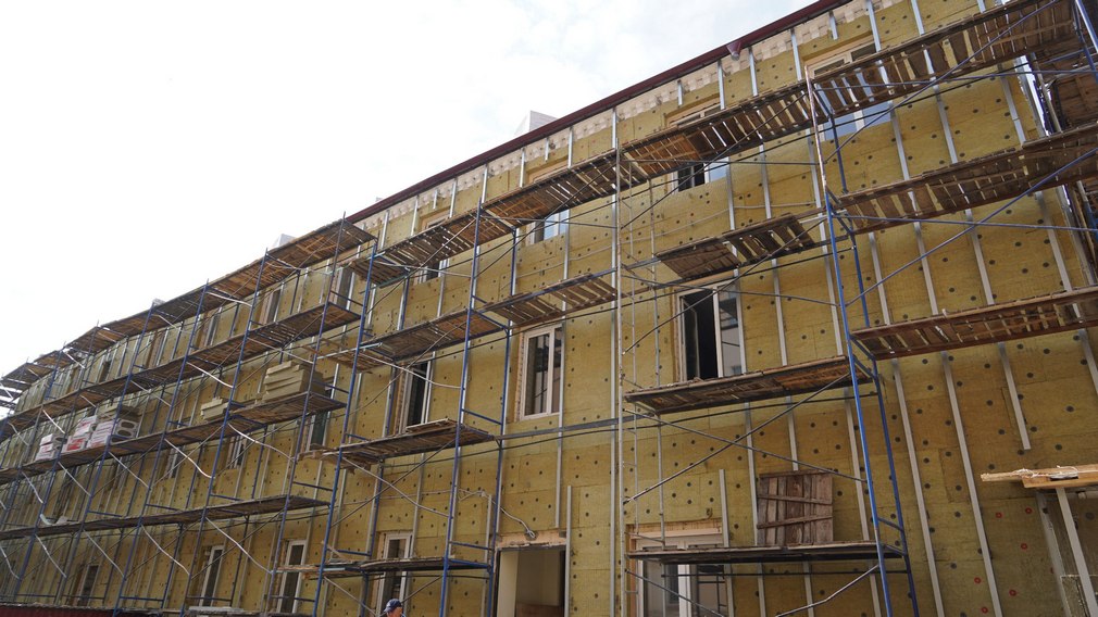 В общежитии завершены работы по утеплению фасада и водосточной системе, строители приступили к чистовой отделке второго и третьего этажей. В ближайшее время начнется укладка плитки и монтаж потолков.