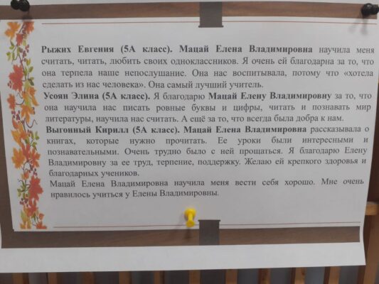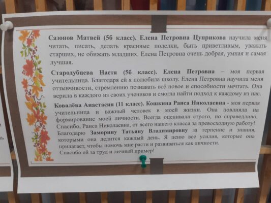 В издании звучало немало благодарственных посланий, подписанных разными учениками. Каждая строчка письма написана с душой и теплотой, подчеркивая признательность за терпение, доброту и чуткость педагогов.