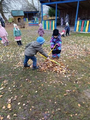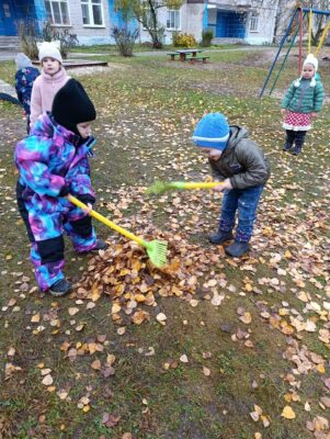 Это стало прекрасной возможностью не только привести участок в порядок, но и заложить основы сознательного отношения к природе и сообществу. Дети работали грабельками и метлами, самостоятельно собирая листья и сор, радуясь тому, что вносят личный вклад в благоустройство родного уголка.