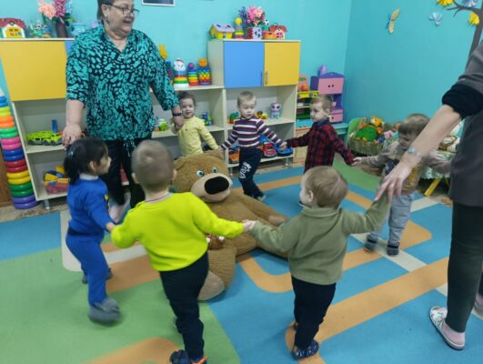 Игровая программа включала классические подвижные игры, такие как «У медведя во бору» и «Медведь и пчелы», а также танец «Каравай», ставший символом детской дружбы и доброты. Атмосферу праздника дополняли смех, веселье и искренняя радость детей, игравших вместе со своими мягкими друзьями.
