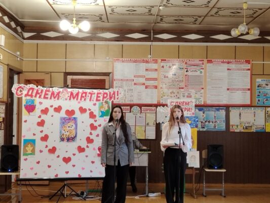 Ведущими вечера выступили ребята из Движения Первых — Алина Тришина и Артём Салий, которые тепло поприветствовали гостей и поздравили с праздником. Программа состояла из множества творческих номеров: песни, юмористические сценки, забавные частушки и проникновенные поздравления, адресованные прекрасным мамам.