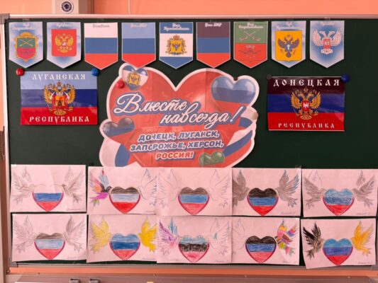 В детском саду «Ромашка» прошли занятия, посвященные важному событию — Дню воссоединения Донецкой Народной Республики, Луганской Народной Республики, Запорожской и Херсонской областей с Российской Федерацией. Эти мероприятия направлены на воспитание в детях патриотизма и уважения к истории своей страны.