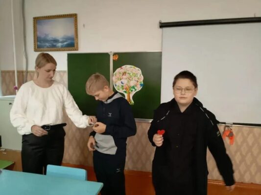 Ульяна Юрьевна предложила ученикам создать своё «дерево» ценностей: школьники написали на бумажных сердечках качества счастливой семьи и разместили их на композиции, символизирующей семейное древо. Этот творческий акт стал визуальным воплощением их понимания важности семейных ценностей.