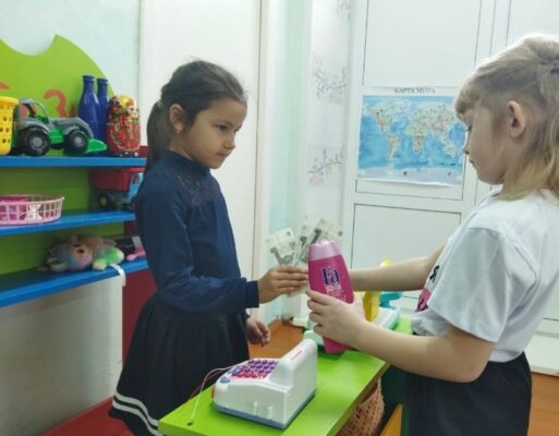 Дети старших групп активно участвовали в сюжетно-ролевых играх, таких как «Магазин», «Супермаркет», «Монополия», «Кафе», и «Банк». Эти игры были направлены на практическое применение знаний о деньгах и помогали детям научиться грамотно обращаться с ними.