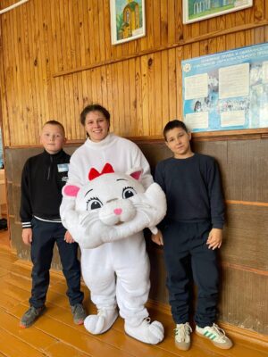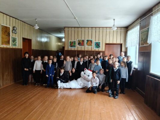 Активистки «Движения Первых» Маргарита Сапсай и Алиса Гаркина подарили обучающимся начальной школы минуты счастья и добра. Ребята с радостью повторяли движения за «кошечкой», а затем все насладились фотографиями и «обнимашками» на память.