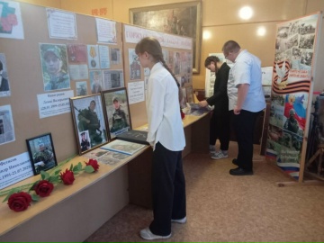 В рамках Всероссийской акции «История Героев» советник по воспитанию совместно с учителем истории Г. Г. Кажуриной подготовили выставку «Герои моей малой Родины». Школьники познакомились с биографиями земляков, проявивших мужество в разные годы, рассмотрели архивные документы, фотографии, узнали о боевых подвигах и трудовых заслугах.