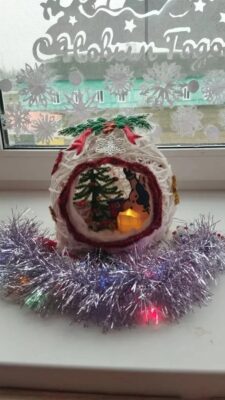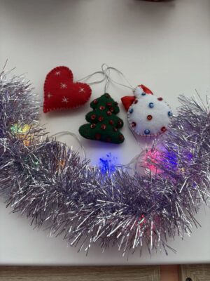 Работами представлены разнообразные украшения: ёлочки, домики, гирлянды и другие элементы декора. Каждое изделие выполнено с душой и любовью, демонстрируя высокий уровень фантазии и мастерства.