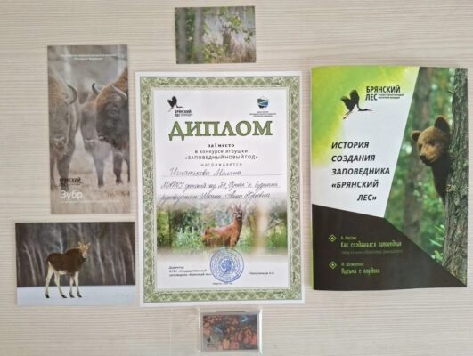 В преддверии новогодних праздников заповедник «Брянский лес» вновь стал площадкой для одного из самых творческих и добрых областных конкурсов — «Заповедный новый год». Его участникам предложили совместить любовь к природе и фантазию: нужно было сделать ёлочную игрушку на деревянном спиле, изобразив одного из обитателей брянских лесов.