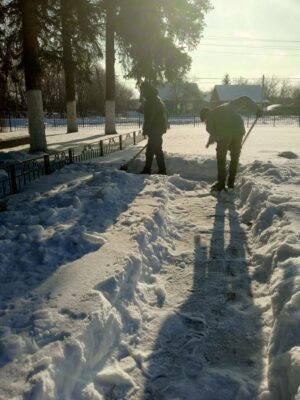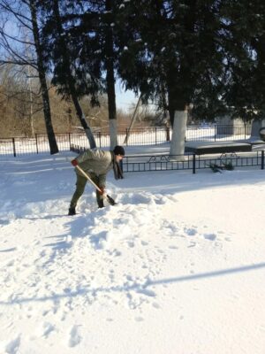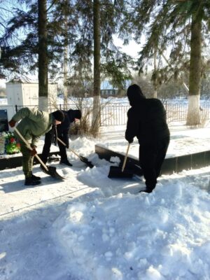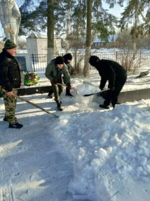 Несмотря на морозную погоду и пронизывающий ветер, школьники взялись за лопаты и дружно принялись расчищать сугробы. Всего за несколько минут совместных усилий пространство вокруг памятника заметно преобразилось: дорожки стали свободными, а постамент — аккуратным и ухоженным.